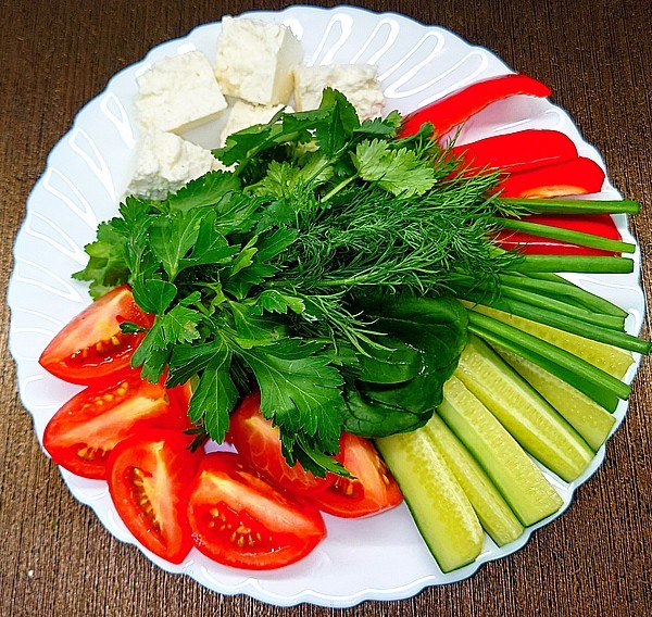 ‒+790.00 руб. Блюдо из свежих овощей с кавказскими травами 525 г