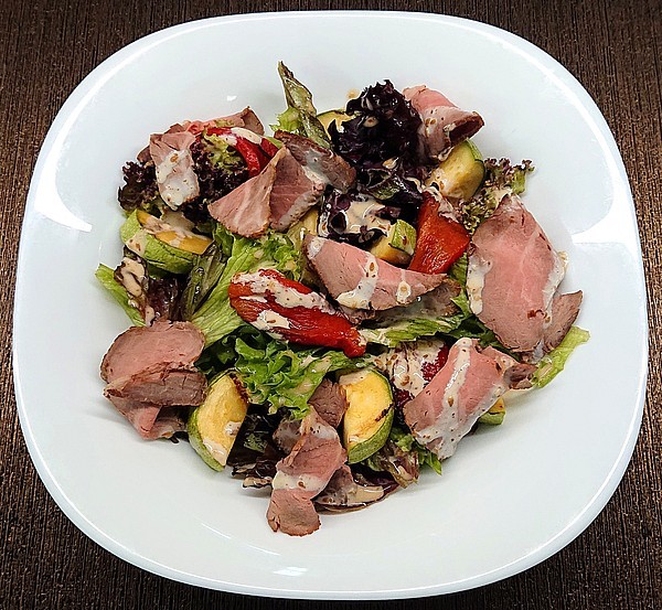 Салат с ростбифом, печеными овощами и соусом "Гамадари"190г
