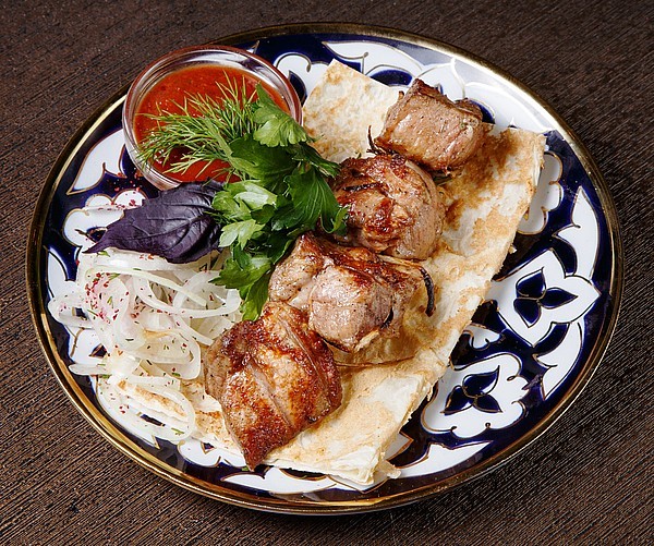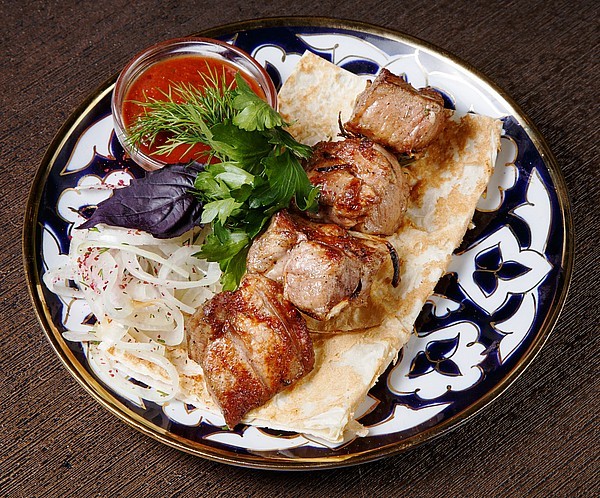 Шашлык из молодого барашка жареный на мангале 100/15/10/1,5г
