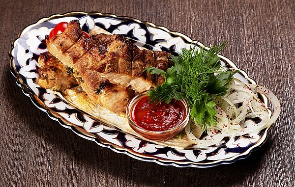 Шашлык из свинины жареный на мангале 100/25/4г