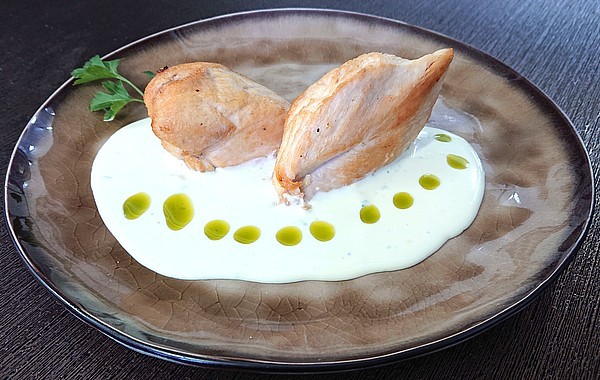 Нежное филе куриной грудки под сливочным соусом с голубым сыром 150/50/2г