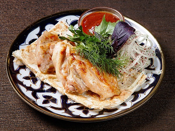Шашлык из курицы жареный на мангале 100/15/10/3г