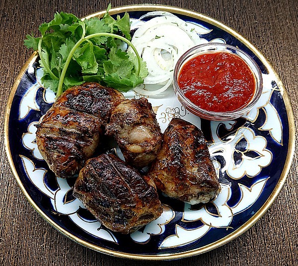 Шашлык из молодого барашка жареный на мангале 100/15/10/1,5г